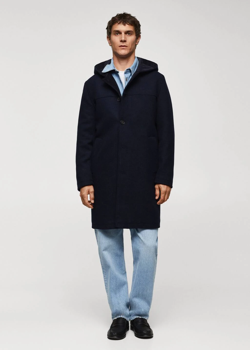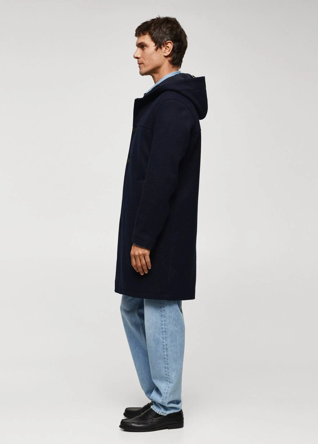 regular-fit, coupe longue, a capuche, fermeture a boutons sur le devant, manches longues, deux poches avant, bas fendu a l’arriere, doublure, poche interieure zippee, le mannequin mesure 190 cm et porte une taille mComposition: 51% laine,43% polyester,3% acrylique,2% polyamide,1% viscose. Doublure: 100% polyester