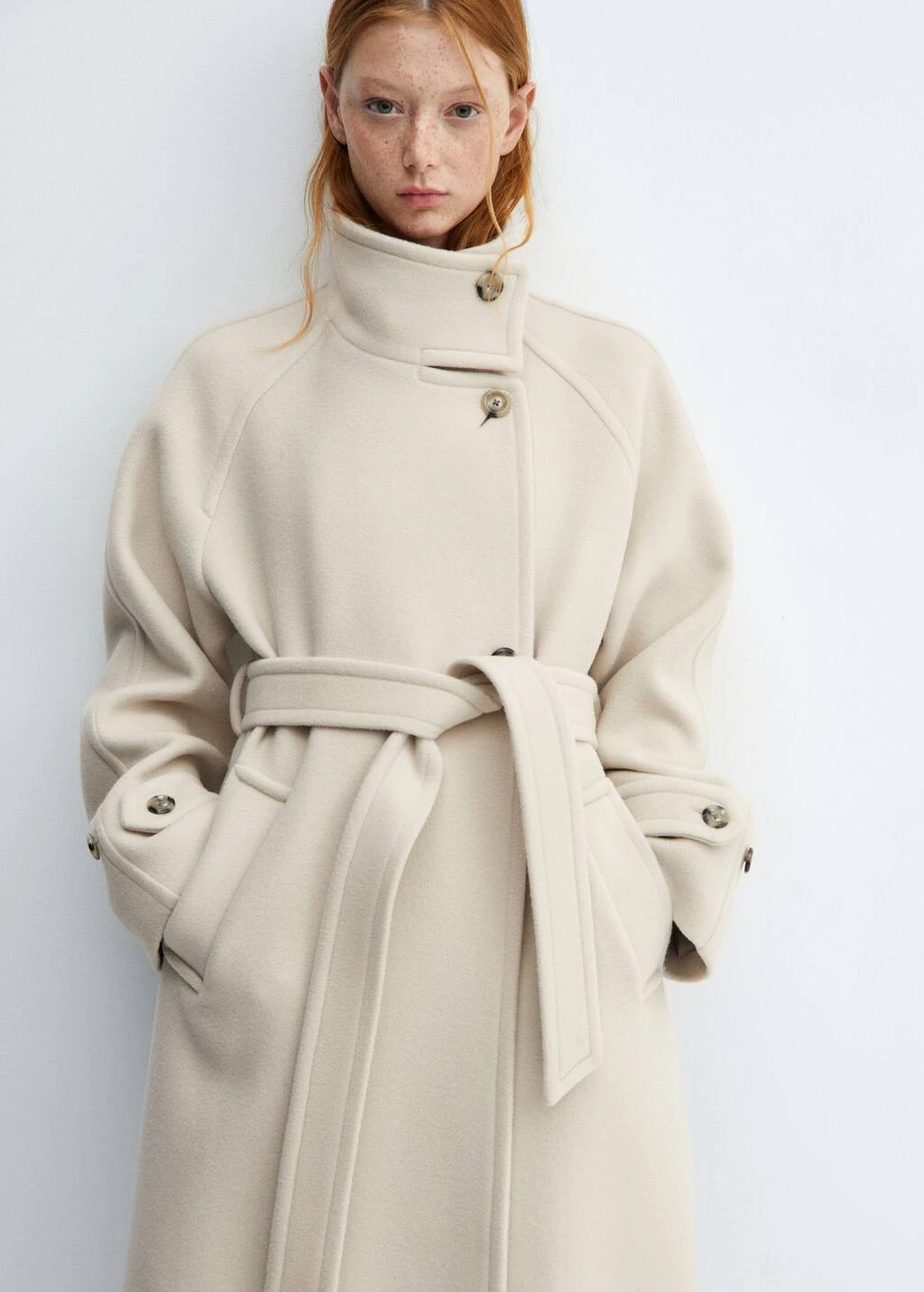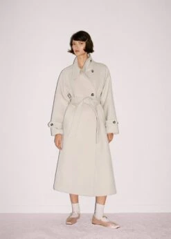 qualite superieure, tissu melange de laine vierge, coupe longue, droit, col montant, manches longues avec poignets boutonnes, deux poches laterales, fermeture a boutons sur le devant, ruban a la taille avec fermeture a nœud, bas fendu a l’arriere, passants pour la ceinture, doublureComposition: 62% laine vierge,23% polyamide,15% laine. Doublure: 51% viscose,49% polyester. Lisiere: 100% polyester. Ceinture: 62% laine vierge,23% polyamide,15% laine