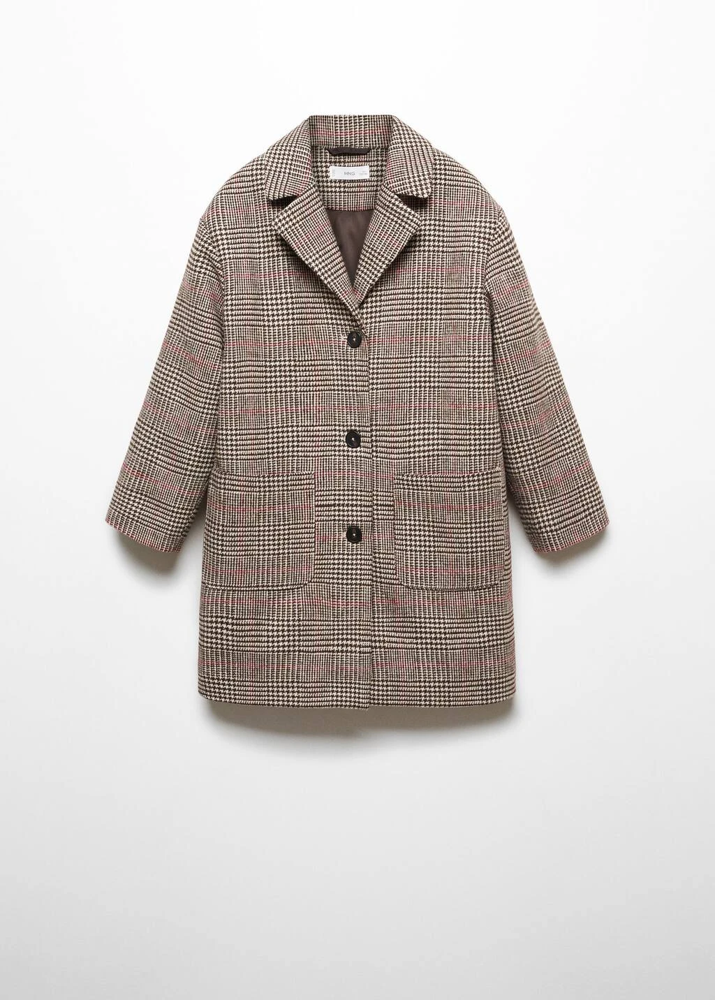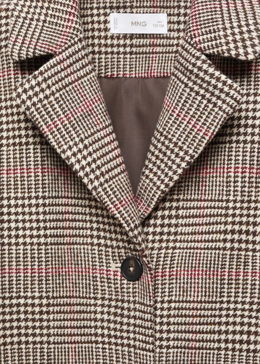motif a carreaux, coupe longue, coupe droite, deux poches avant, col en v avec rabat, manches longues, fermeture frontale, fermeture boutonneeComposition: 75% polyester,17% acrylique,5% polyamide,2% viscose,1% laine. Doublure: 100% polyester. Rembourrage: 100% polyester