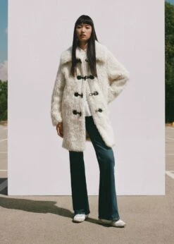 tissu de laine melange, effet fourrure, coupe midi, droit, col chemise, manches longues, fermeture frontale, fermeture a boutons style duffle-coat, doublureComposition: 36% acrylique,31% modacrylique,29% polyester,4% laine. Doublure: 55% polyester,45% viscose