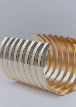 cette saison, les maxi-bracelets s’imposent : nous vous proposons une version unique avec un design ondule et un effet bicolore. associez-le aux boucles d’oreilles assorties pour apporter la touche finale aux looks les plus sophistiques, design ondule, design metallique, bicolore, sans fermeture, collection fetes et ceremonies, capsule : une collection de vetements en edition limitee, fabriques avec les meilleurs tissus et le plus grand soin en matiere de patrons, afin d’obtenir les meilleures finitions. cette collection exclusive est concue pour les evenements et les occasions les plus chics.Composition: 100% laiton