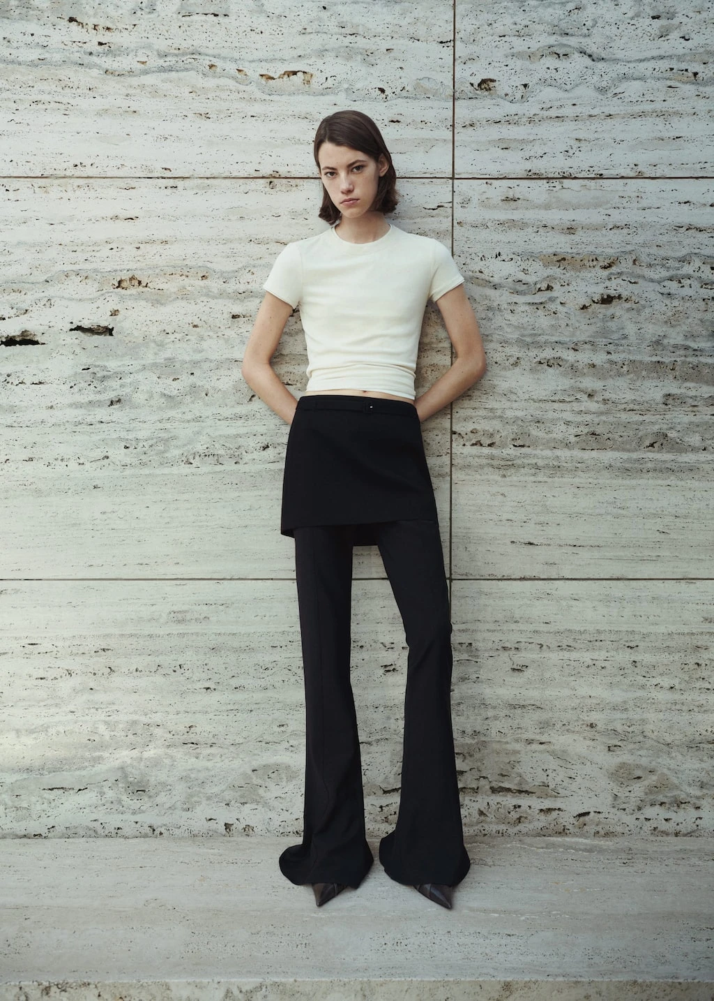 tissu fluide, droit, coupe mini, taille basse, ceinture decorativeComposition: 76% polyester,21% viscose,3% elasthanne. Base de la ceinture: 76% polyester,21% viscose,3% elasthanne