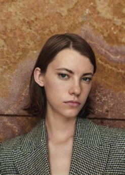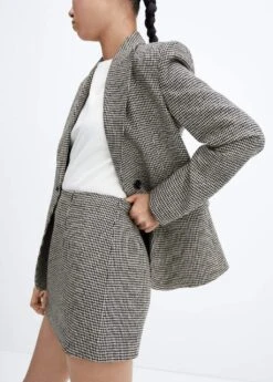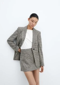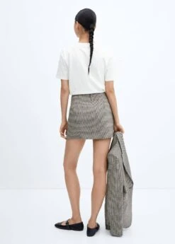 tissu fluide, coupe courte, coupe droite, coupe cintree, imprime pied-de-poule, taille normale, fermeture eclair a l’arriere, doublure, total lookComposition: 79% acrylique,13% polyester,7% viscose,1% elasthanne. Doublure: 55% polyester,45% viscose
