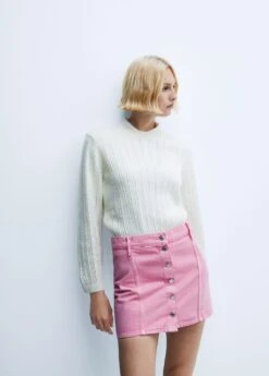 tissu en coton de style jean, coupe courte, droit, fermeture boutonnee sur le devant, passants pour la ceinture, coutures decoratives, total look, le mannequin mesure 179 cm et porte une taille 36Composition: 100% coton