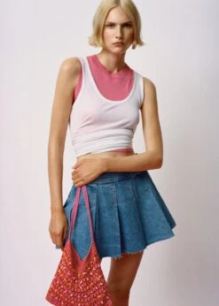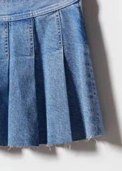 tissu en coton de style jean, gros plis, coupe courte, taille basse, bas effiloche, fermeture eclair laterale, total lookComposition: 100% coton