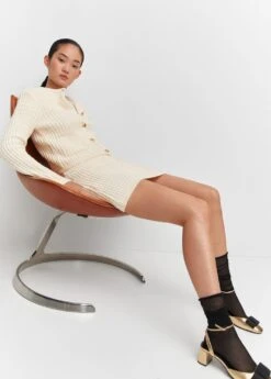 tissu en grosse maille, coupe droite, coupe courte, taille elastiquee, sans fermeture, total lookComposition: 55% polyester,45% coton