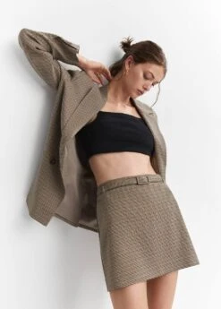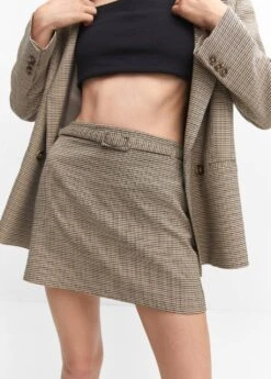imprime pied-de-poule, coupe courte, coupe droite, fermeture eclair, ceinture ajustable, total look, disponible plusComposition: 65% polyester,33% viscose,2% elasthanne. Doublure: 100% polyester. Ceinture: 65% polyester,33% viscose,2% elasthanne
