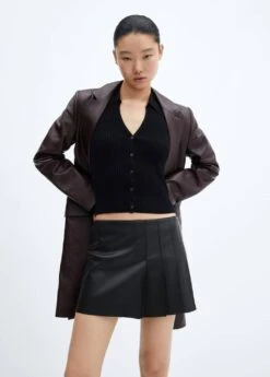 tissu fluide, coupe courte, droit, similicuir, taille normale, fermeture eclair laterale, detail plisseComposition: 100% polyester. Revêtement: 100% polyurethane