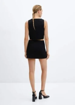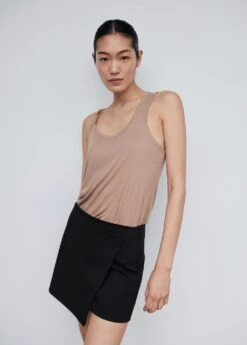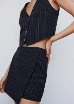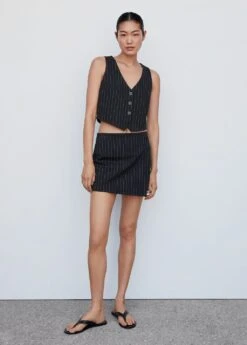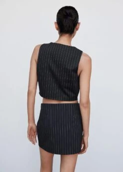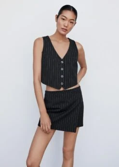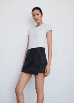 tissu en maille, tissu fluide, disponible en uni ou imprime, imprime fines rayures, croise, coupe droite, coupe courte, taille normale, fermeture eclair invisible sur le cote, total lookComposition: 67% viscose,29% polyamide,4% elasthanne. Doublure: 100% polyester