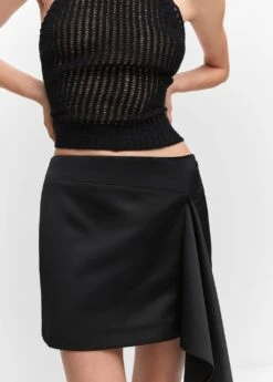 tissu fluide, tissu satine, taille normale, coupe courte, fermeture eclair laterale, lanieres decoratives, collection fetes et ceremoniesComposition: 100% polyester. Doublure: 100% viscose
