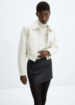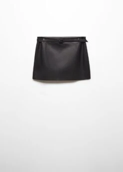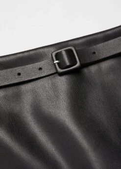 tissu fluide, similicuir, coupe courte, coupe droite, fermeture eclair laterale, ceinture avec fermeture a boucle, passants de ceinture Composition: 100% polyester. Revêtement: 100% polyurethane