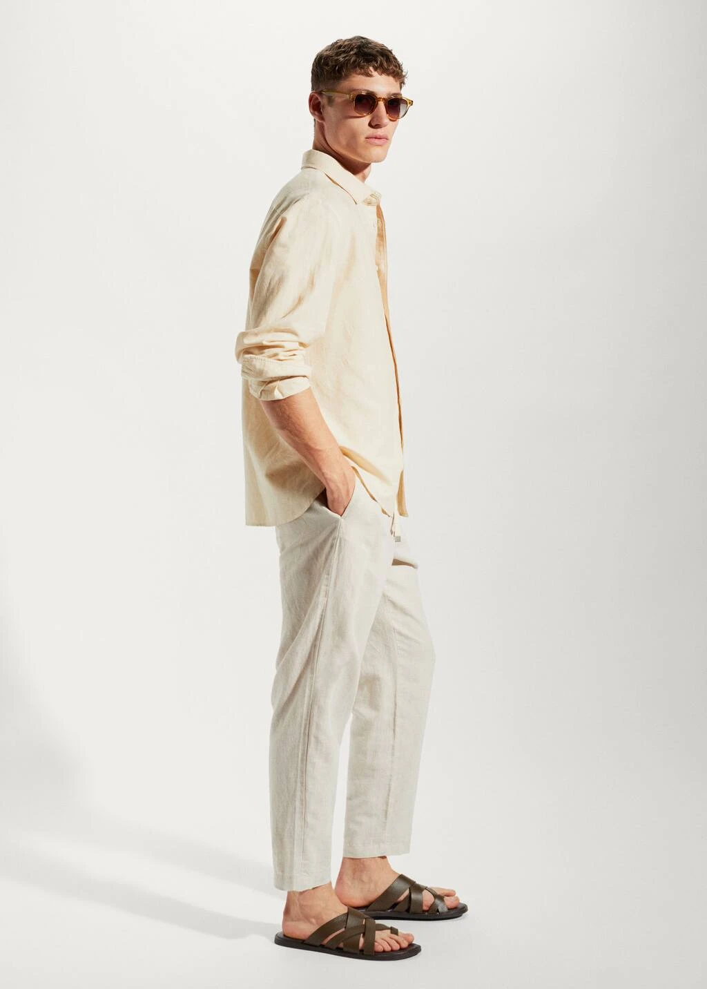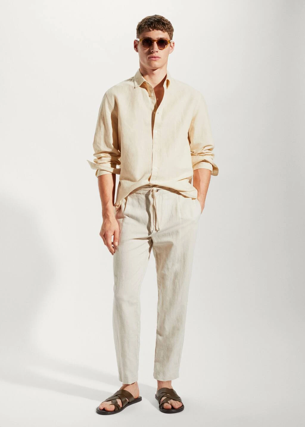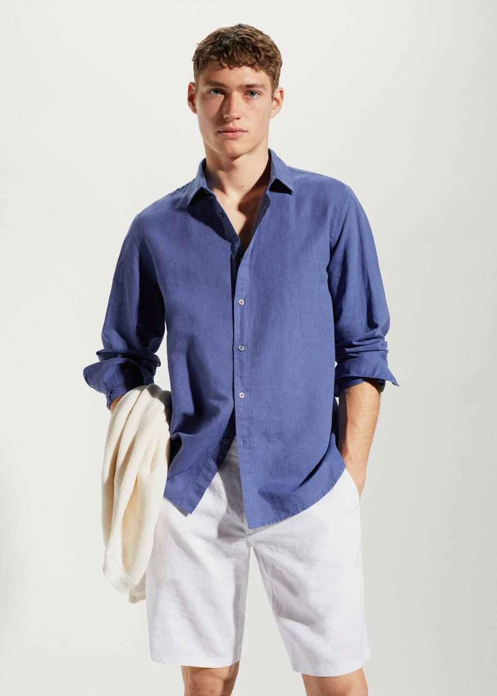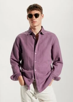 tissu en coton et lin melanges, tissu leger, regular-fit, col chemise, manches longues avec poignets boutonnes, fermeture a boutons sur le devant, bas arrondi, la couleur corail est une exclusivite en ligneComposition: 55% lin,45% coton