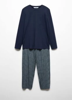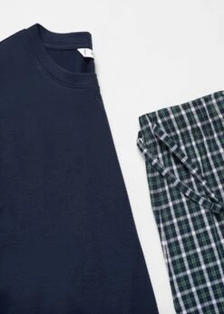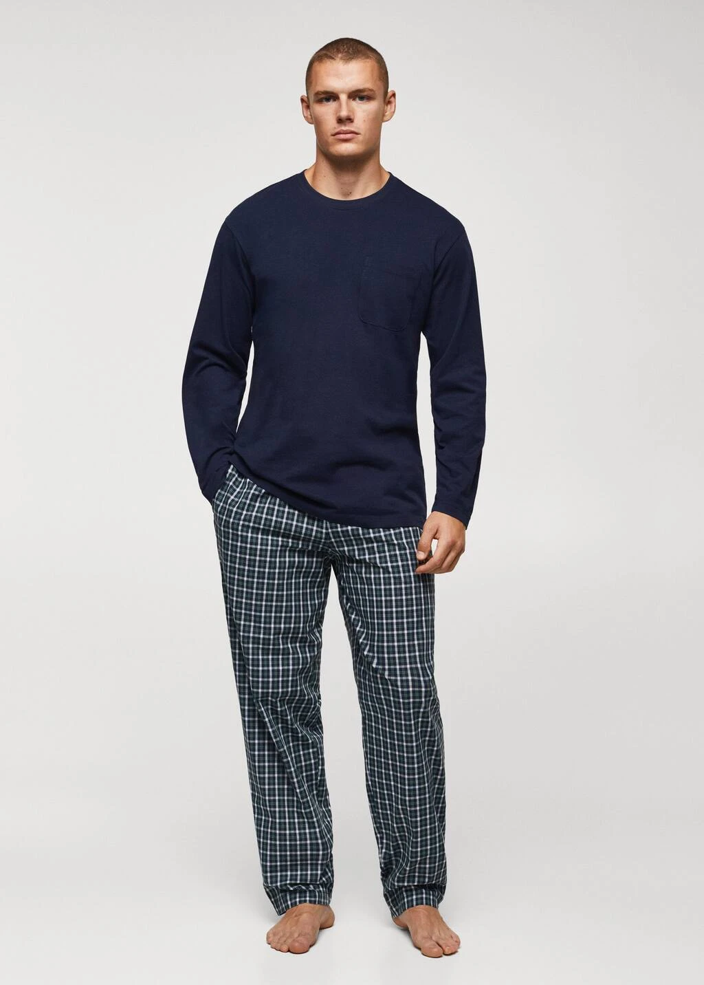 pack t-shirt et pantalon de pyjama, 100 % coton, regular-fit, t-shirt a manches longues, col rond, manches longues, bords coteles elastiques, taille elastique avec cordon, deux poches avant, vendu avec un sac de rangement, le mannequin mesure 183 cm et porte une taille mComposition: 100% coton. T-shirt: 100% coton