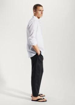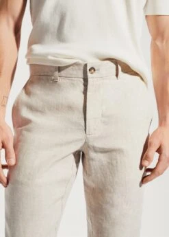 100 % lin, tissu 100 % lin, slim-fit, double bouton et fermeture eclair, passants de ceinture , deux poches avant, poche gousset au niveau des hanches, collection essentiels, deux poches passepoilees boutonnees a l’arriere, le mannequin mesure 185 cm et porte une taille 42, campagne antoine griezmannComposition: 100% lin. Doublure poches: 65% polyester,35% coton