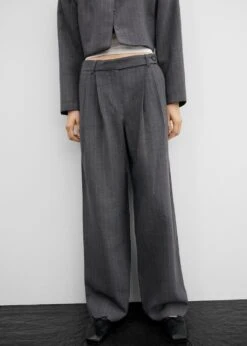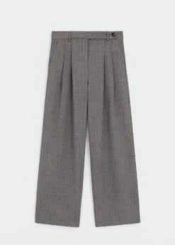collection selection, tissu de laine melange, coupe wideleg, coupe longue, taille normale, imprime microrayures, deux poches laterales, deux poches passepoilees a l’arriere, fermeture eclair avec bouton, pinces, passants pour la ceinture, total look, une selection de pieces qui vous accompagneront lors du retour au bureau. confectionnee avec des matieres de qualite pour creer une garde-robe feminine et contemporaine pour votre quotidien.