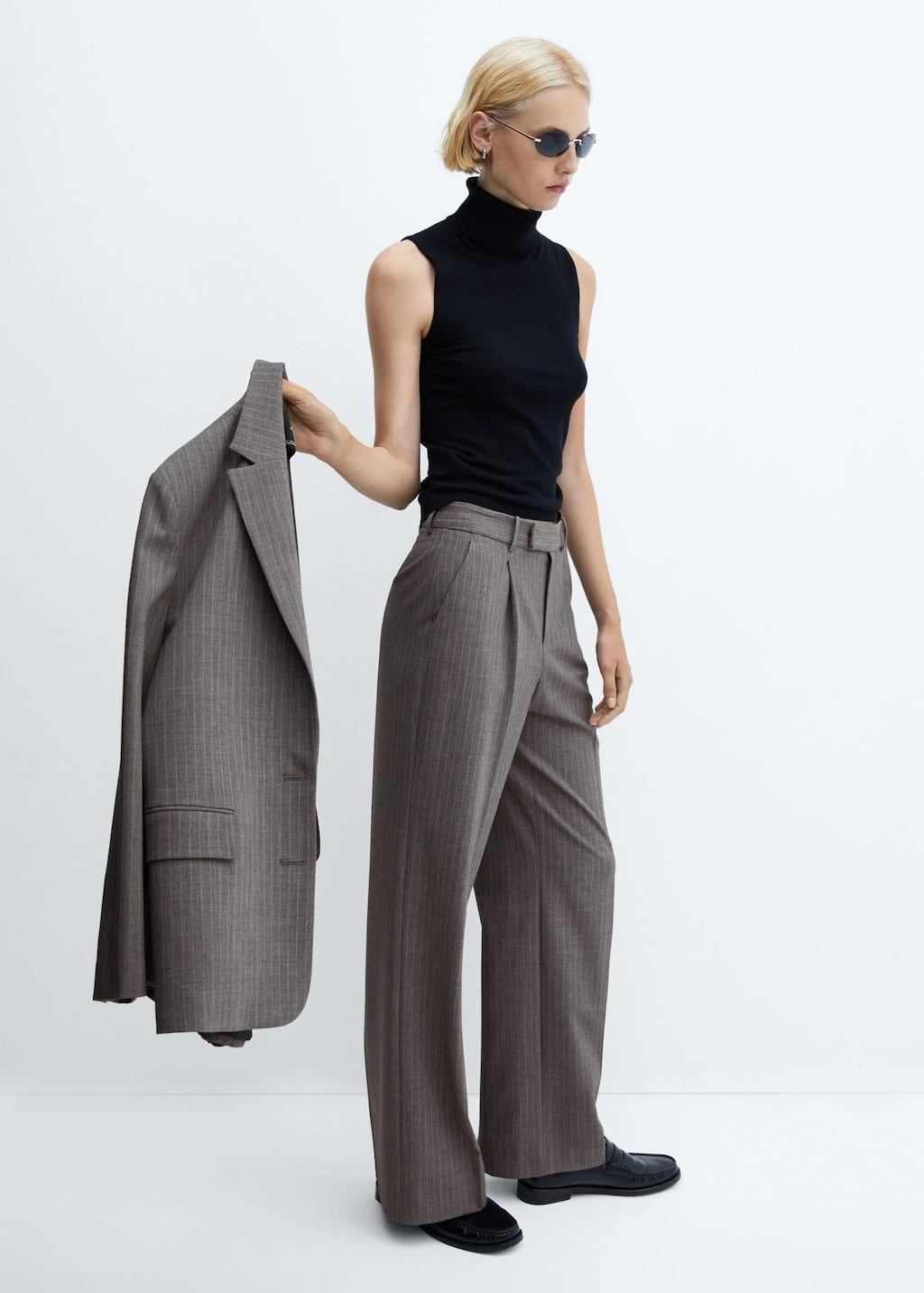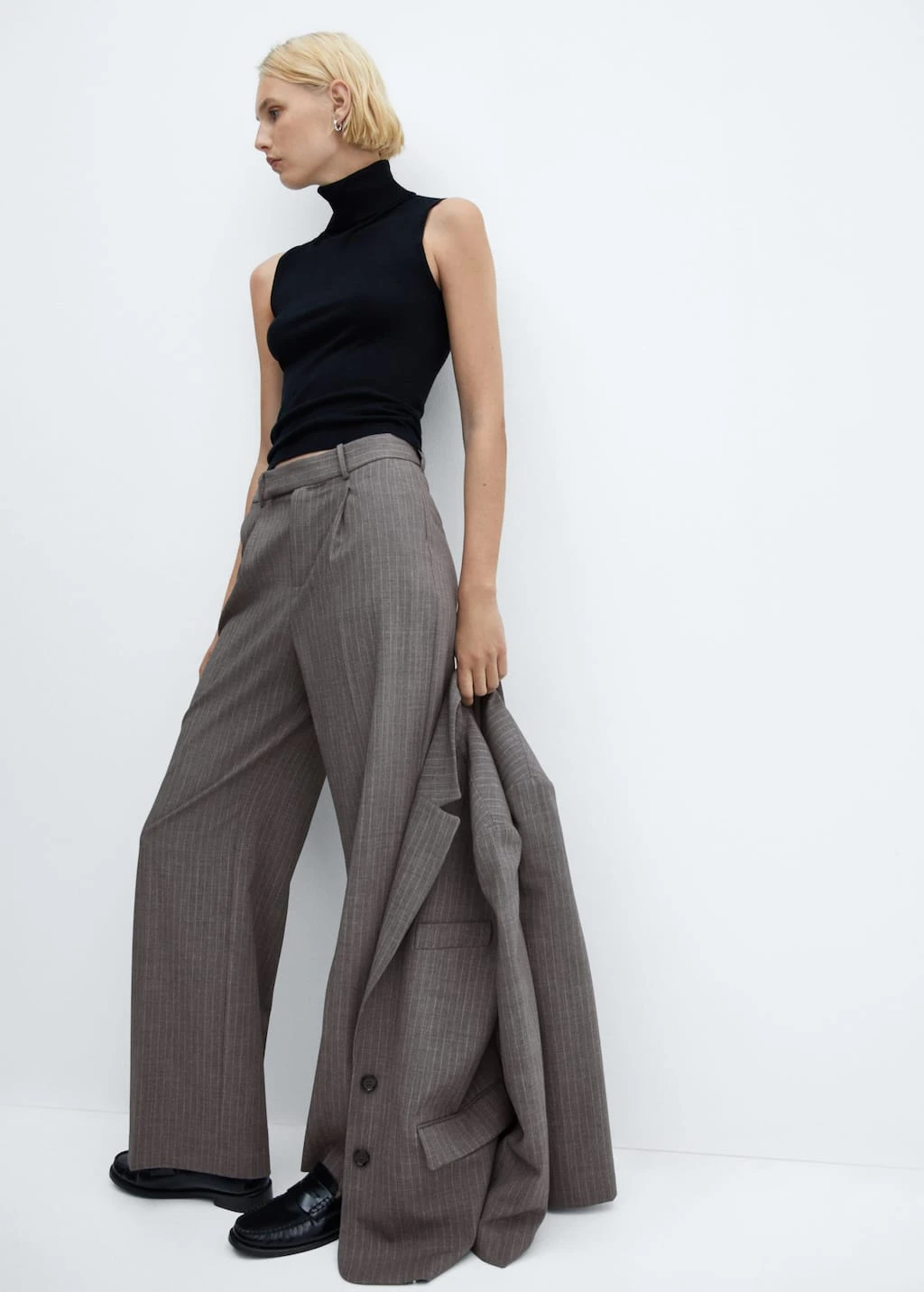 coupe wideleg, coupe longue, fines rayures, taille normale, passants pour la ceinture, poches laterales, fermeture eclair avec crochet et bouton dissimules, total lookComposition: 60% polyester,32% viscose,8% elasthanne. Doublure: 55% polyester,45% viscose