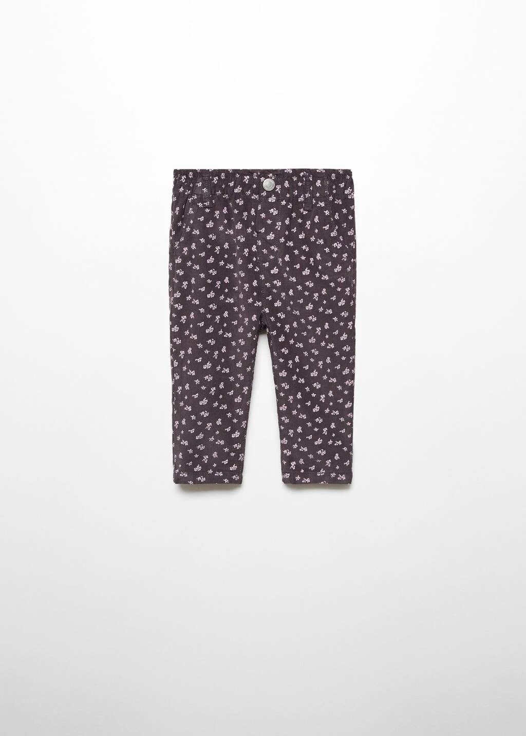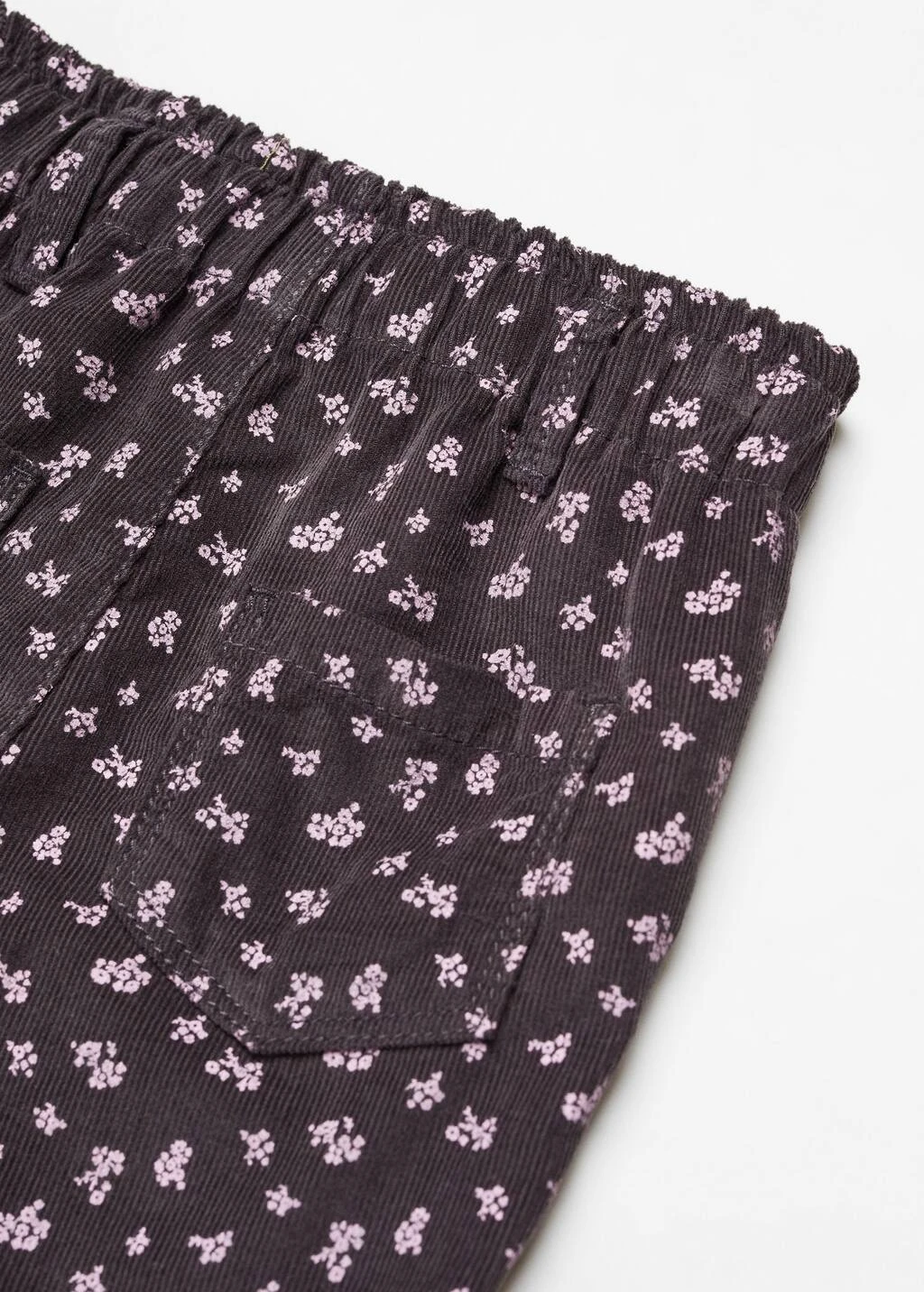 tissu en velours cotele, imprime floral, coupe droite, coupe jogging, quatre poches, taille elastique, fermeture a boutonComposition: 100% coton