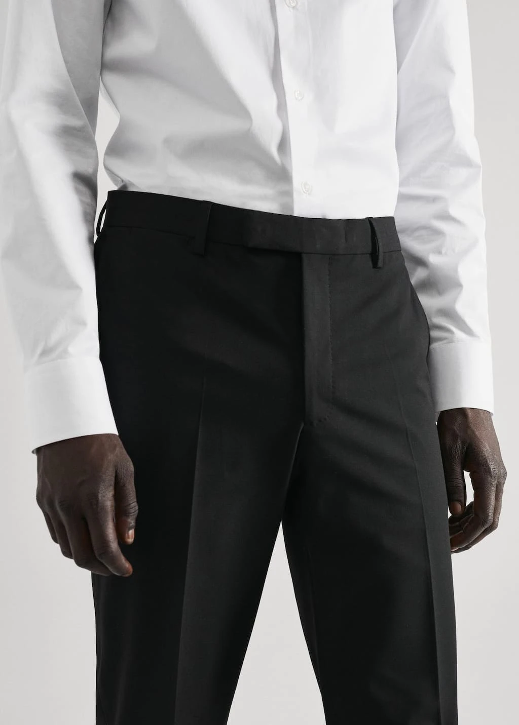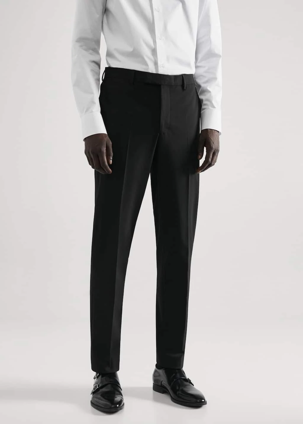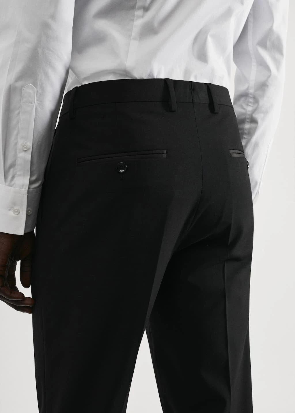 slim-fit, taille normale, fermeture eclair avec crochet et bouton dissimules, passants de ceinture , pinces, deux poches avant, deux poches passepoilees avec fermeture boutonnee a l’arriere, le mannequin mesure 190 cm et porte une taille 42, avec sa coupe legerement ajustee, le costume slim-fit est un peu plus pres du corps que le modele regular-fit. ideal pour ceux qui veulent plus quâun costume de coupe classique, sans pour autant avoir une silhouette tres cintree. le costume slim-fit se decline en differents modeles : croise, en lin, en laine et classique. associez-le a un pull ou un t-shirt pour un look plus decontracte, ou a une chemise classique et une cravate pour les occasions speciales.Composition: 50% polyester recyclĂ©,28% viscose,16% polyester,6% elasthanne. Doublure poches: 65% polyester,35% coton