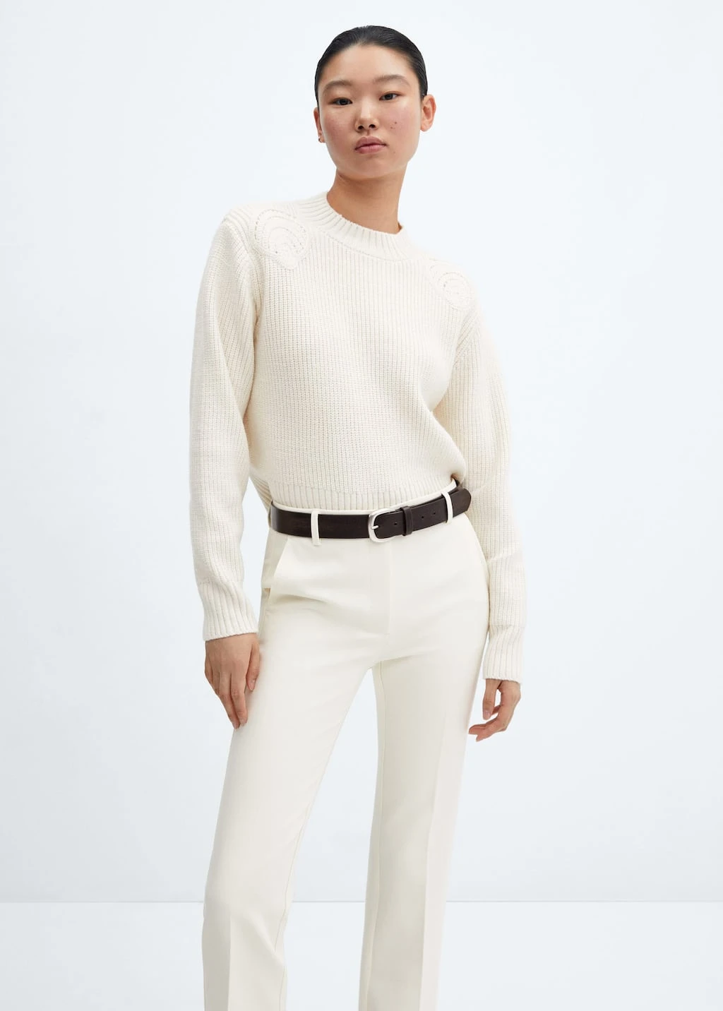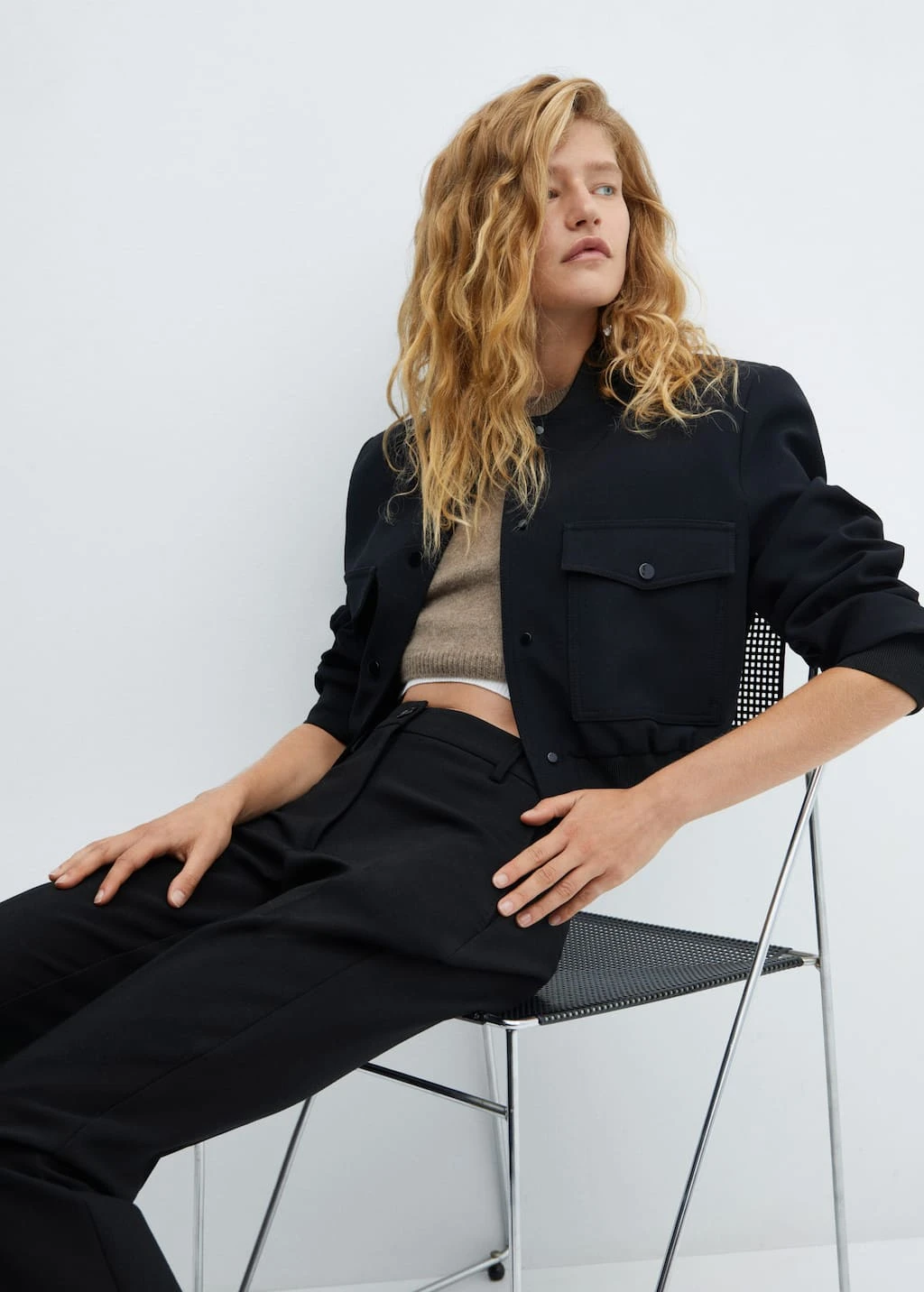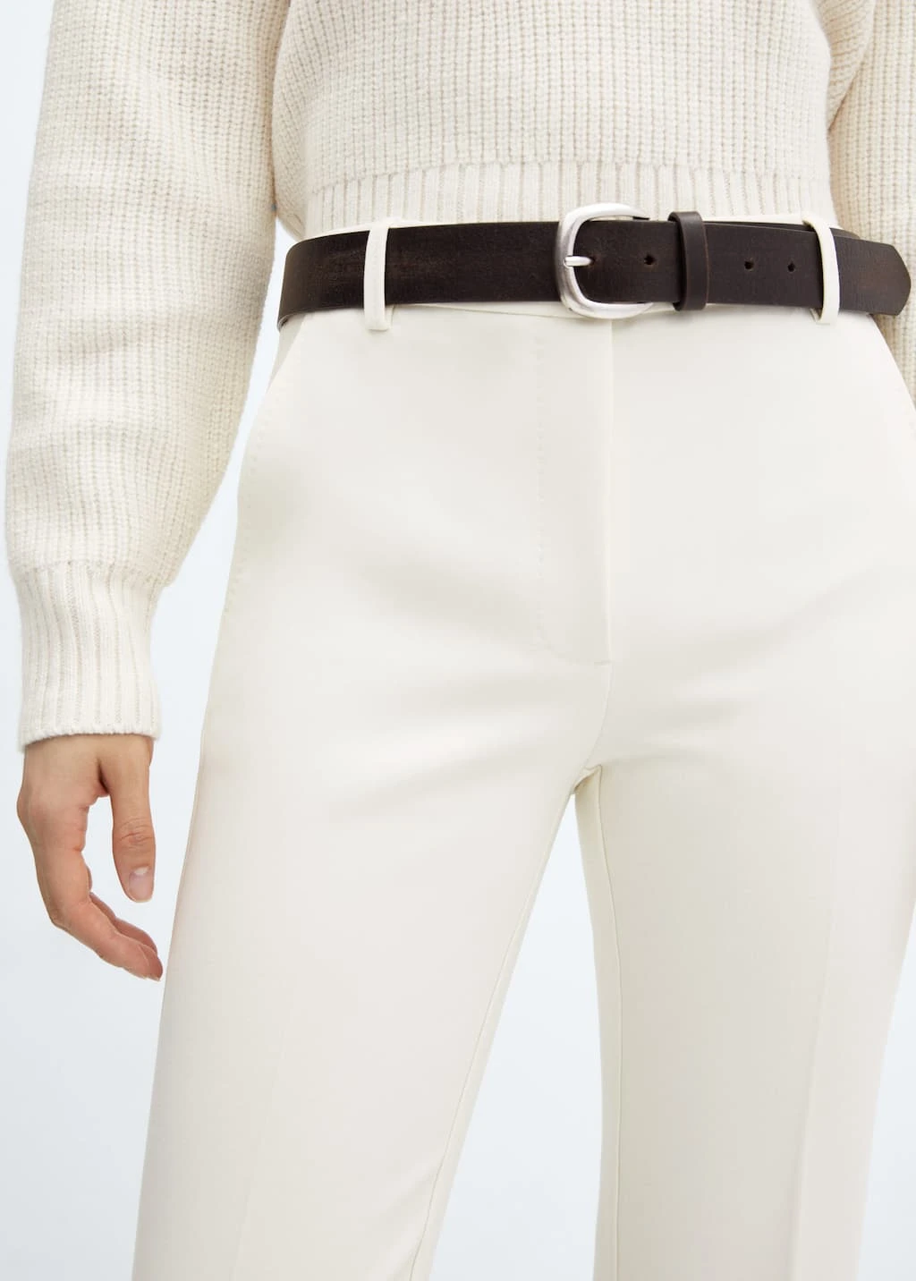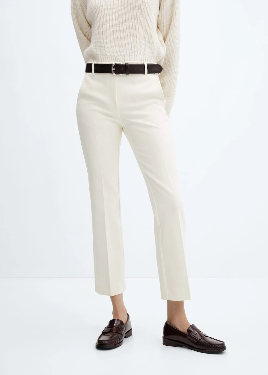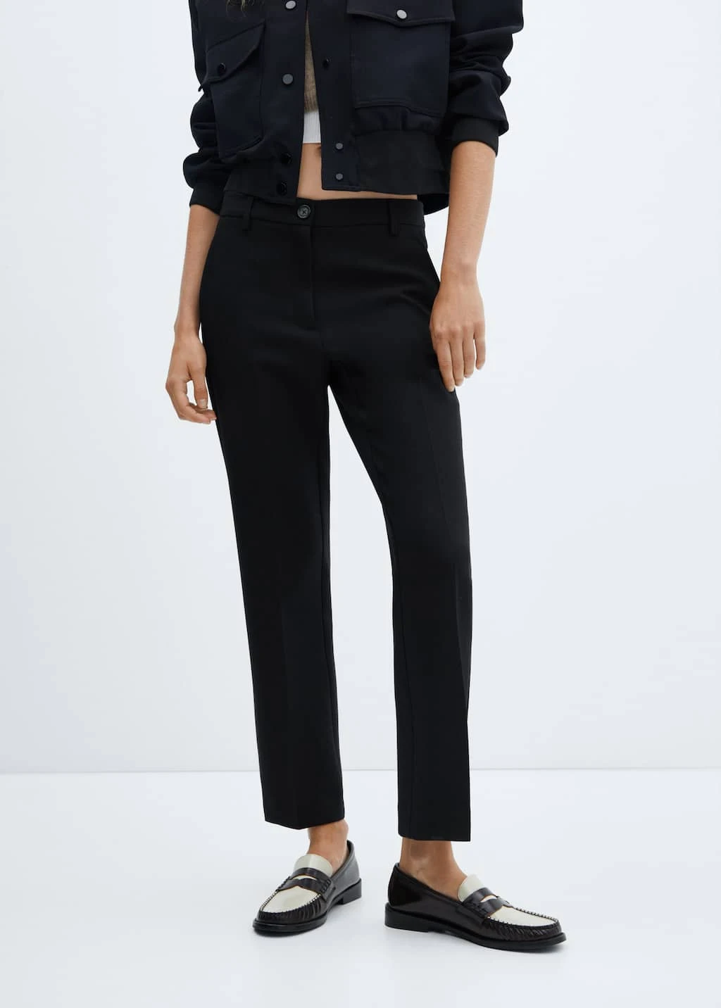 style crop, droit, deux poches laterales, deux poches passepoilees a l’arriere, fermeture eclair avec bouton, passants pour la ceintureComposition: 75% polyester,20% viscose,5% elasthanne. Doublure poches: 100% polyester