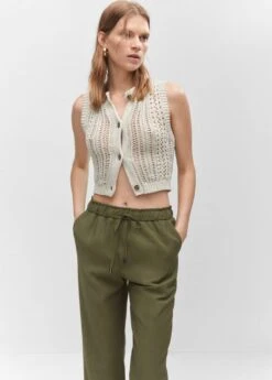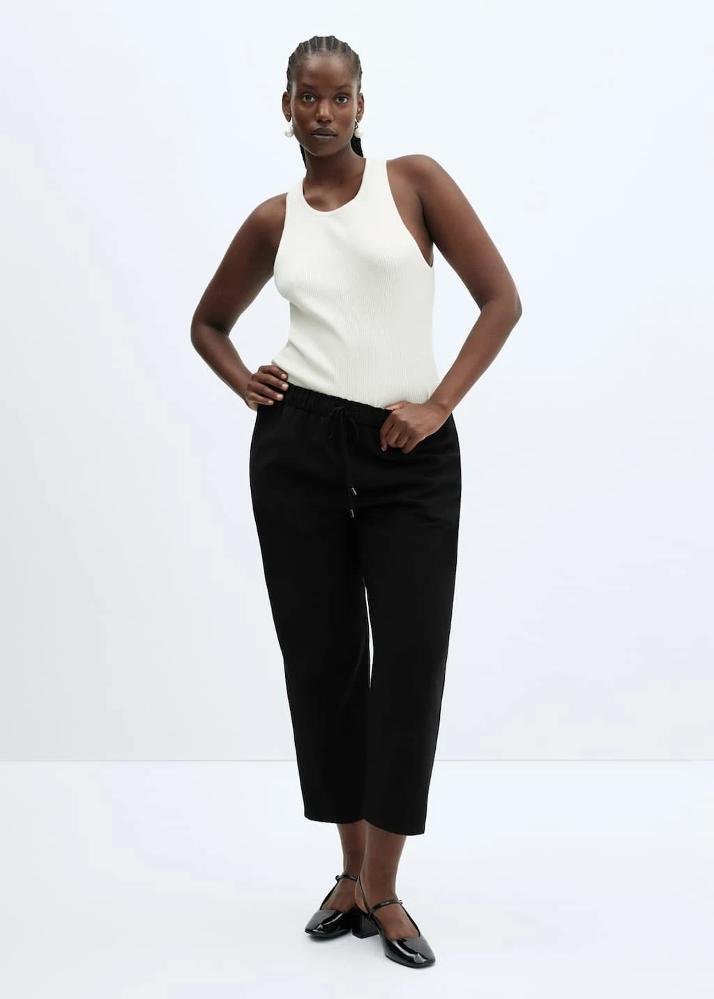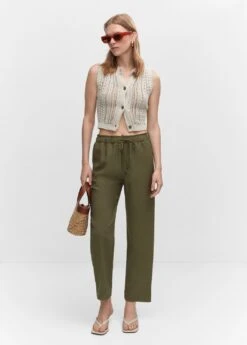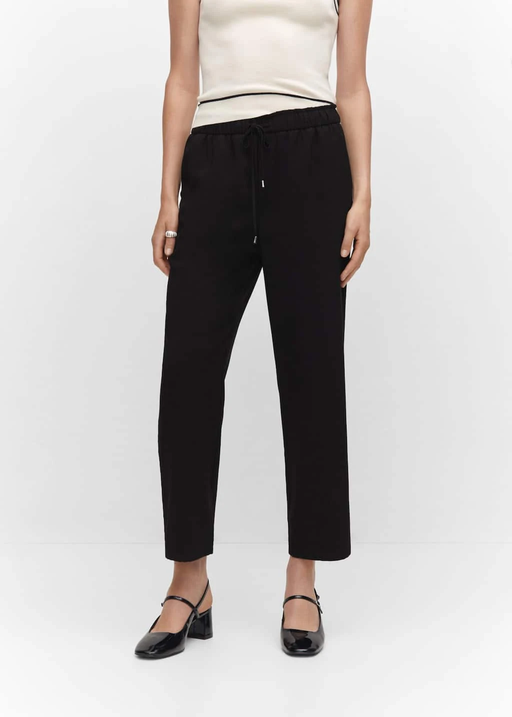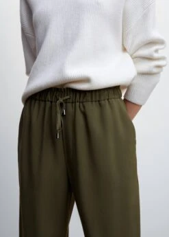 tissu fluide, coupe longue, coupe droite, style jogger, taille elastique, ceinture a nouer a la taille, deux poches laterales, disponible plusComposition: 93% viscose,7% polyester. Doublure: 83% polyester,17% coton