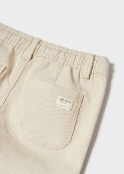 tissu en coton, coupe longue, coupe droite, taille elastique, regular-fit, deux poches a rabat a l’arriere, fermeture a cordonComposition: 98% coton,2% elasthanne