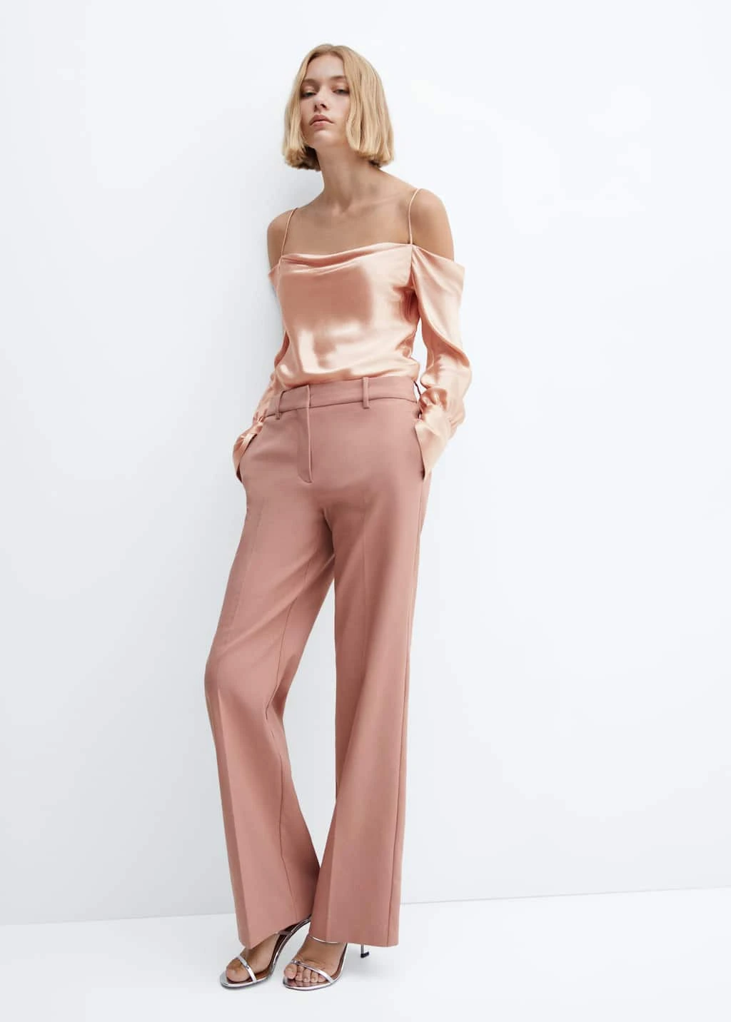 tissu de coton melange, droit, taille haute, passants pour la ceinture, poches laterales, fermeture eclair avec crochet et bouton dissimulesComposition: 52% coton,45% polyester,3% elasthanne. Doublure: 52% viscose,48% polyester