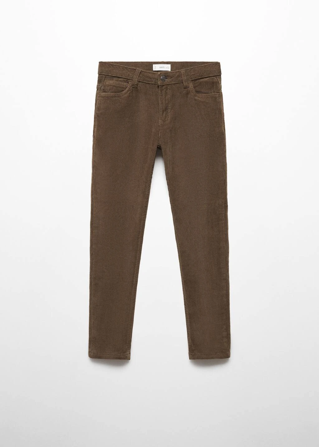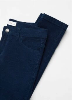 tissu en coton, tissu en velours cotele, coupe droite, coupe longue, cinq poches, fermeture a boutonComposition: 98% coton,2% elasthanne