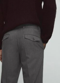 slim-fit, tissu de laine melange, tissu antibacterien, fermeture eclair avec crochet et bouton dissimules, passants de ceinture , pinces sur le devant, pli marque au fer devant et derriere, deux poches avant, deux poches a rabat boutonnees a l’arriere, bas evase, le mannequin mesure 190 cm et porte une taille 42, une selection de vetements classiques aux lignes minimalistes, fabriques avec des tissus de haute qualite pour une garde-robe intemporelle, polyvalente et eleganteComposition: 70% laine,30% polyester recyclé. Doublure poches: 65% polyester,35% coton