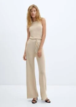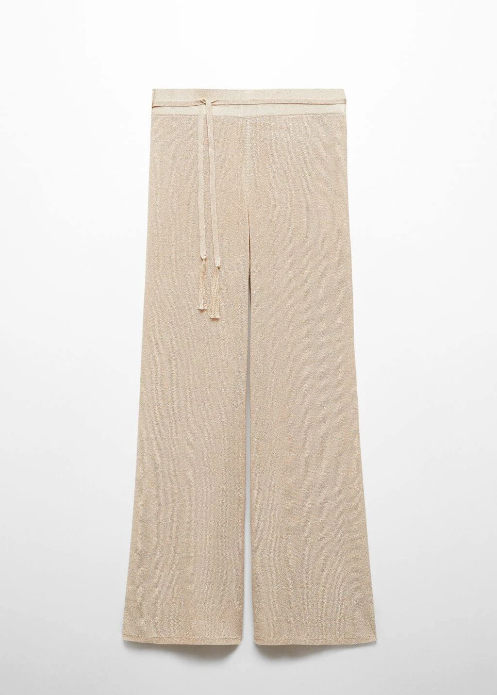 tissu en fil metallise melange, flare, coupe longue, taille haute, taille elastique, ruban a la taille avec fermeture a nœud, total lookComposition: 82% polyester,18% polyester avec revêtement de cuivre