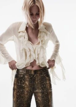 effet peau de serpent, droit, taille normale, poches laterales, fermeture eclair avec bouton, passants pour la ceinture, doublureComposition: 100% polyester. Doublure: 100% polyester. Lisiere: 100% polyester. RevĂȘtement: 100% polyurethane