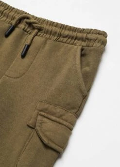 100 % coton, design cargo, coupe longue, taille elastique, deux poches cargo, poche a rabat, fermeture a cordonComposition: 100% coton
