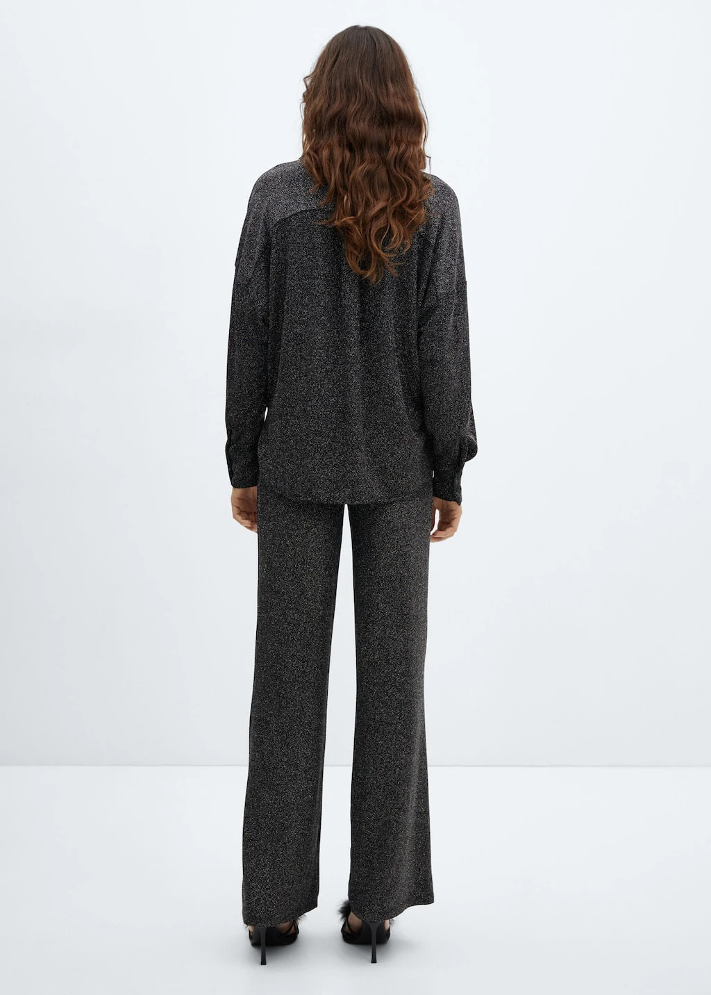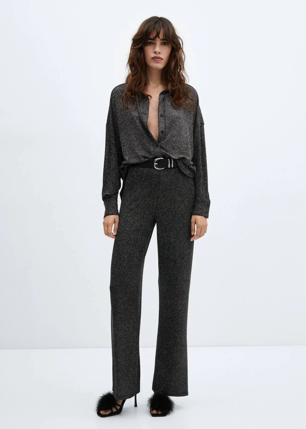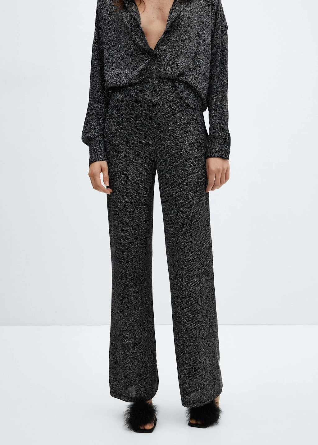 tissu lurex, coupe longue, droit, taille haute, taille elastique, sans fermeture, total look, collection fetes et ceremonies.Composition: 84% polyamide,7% polyester,6% elasthanne,3% polyester avec revĂȘtement de cuivre