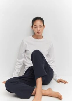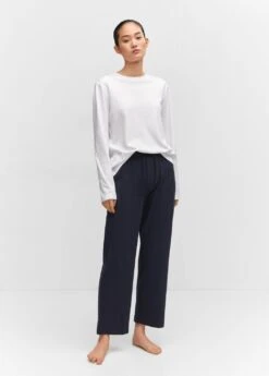 tissu de coton melange, tissu en maille, coupe longue, coupe droite, taille elastique avec fermeture a nœudComposition: 96% coton,4% elasthanne