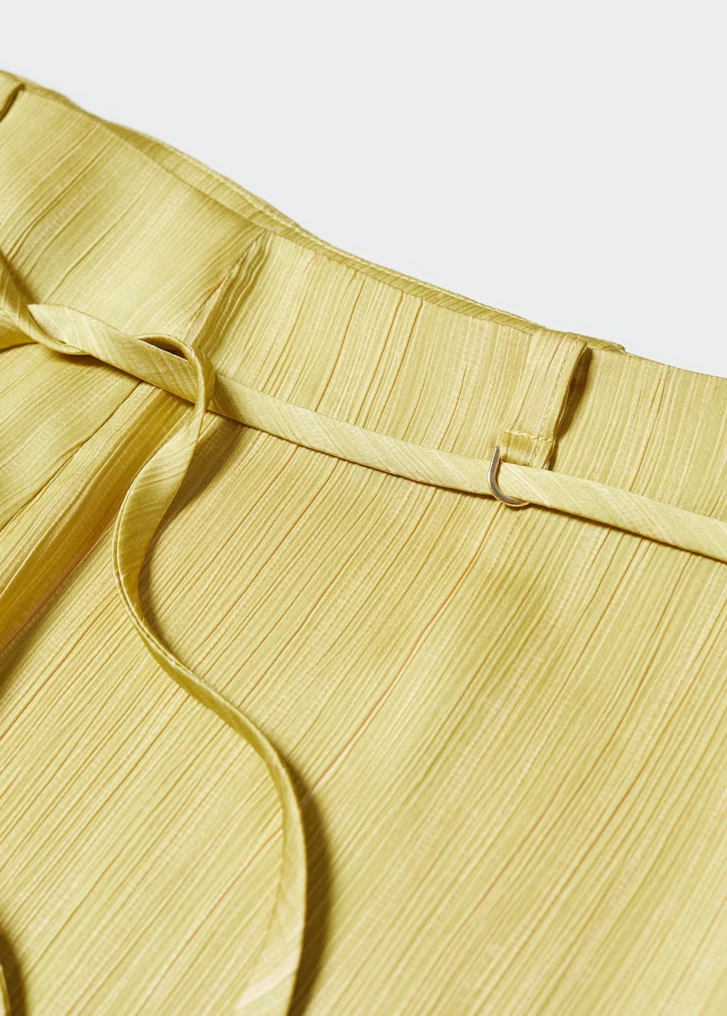 tissu satine, tissu fluide, design plisse, coupe droite, taille haute, fermeture eclair laterale, nœud amovible a la taille, total lookComposition: 100% polyester