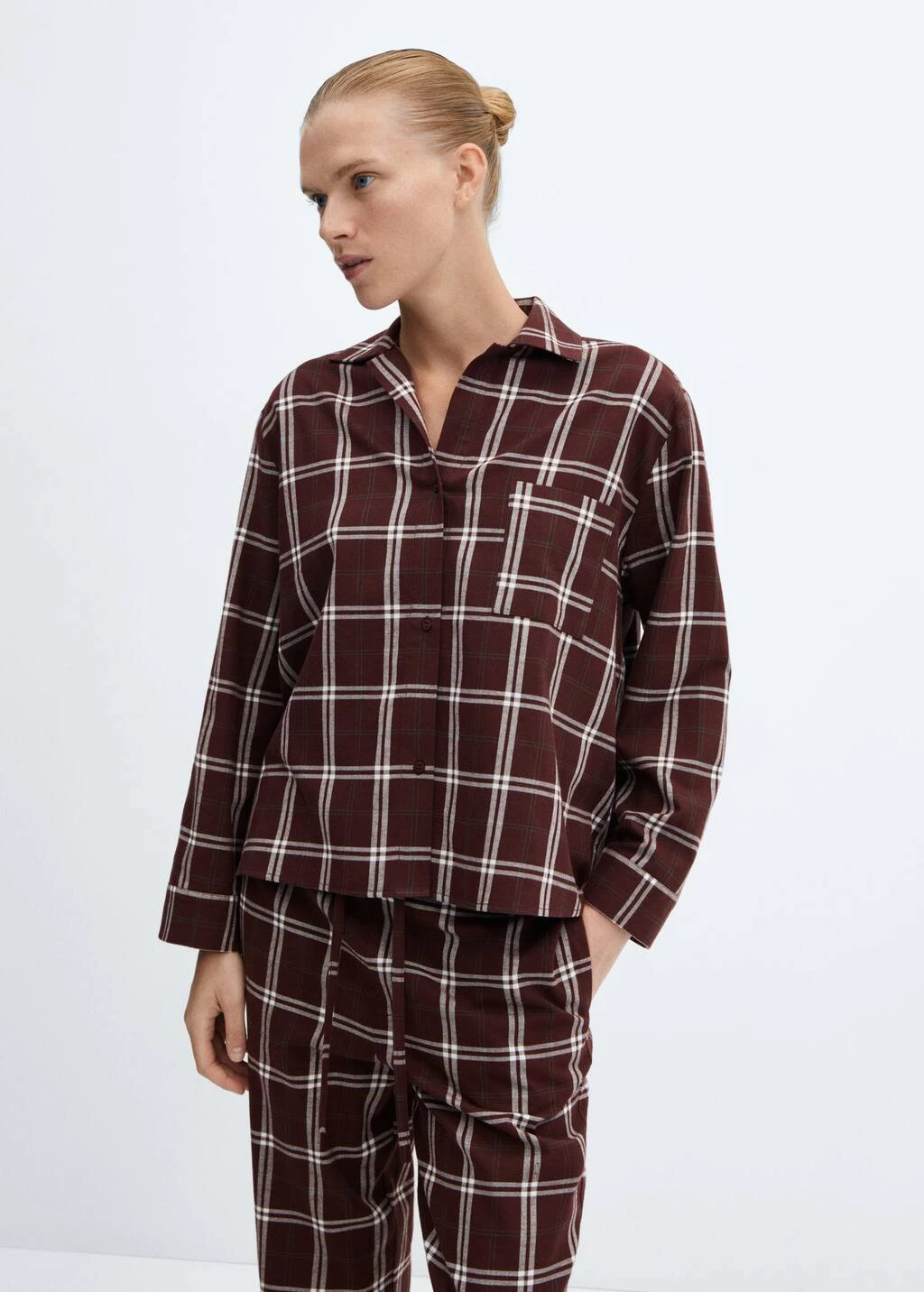 100 % coton, tissu en flanelle, coupe longue, droit, imprime carreaux, taille normale, taille elastique avec fermeture a nœud, deux poches laterales, total look.Composition: 100% coton