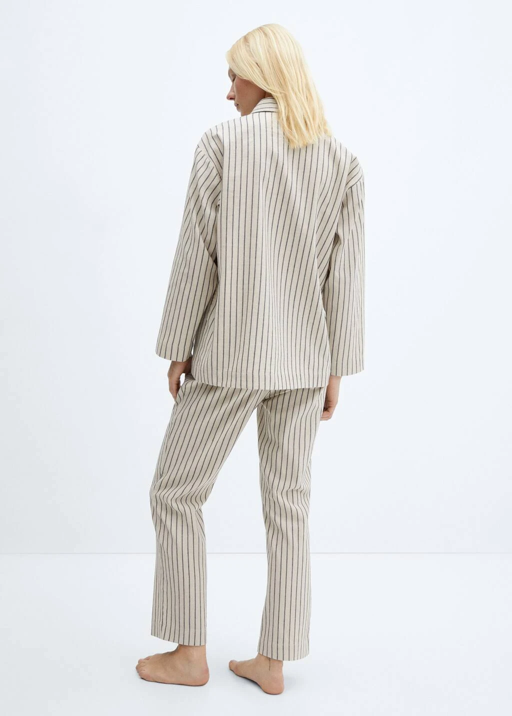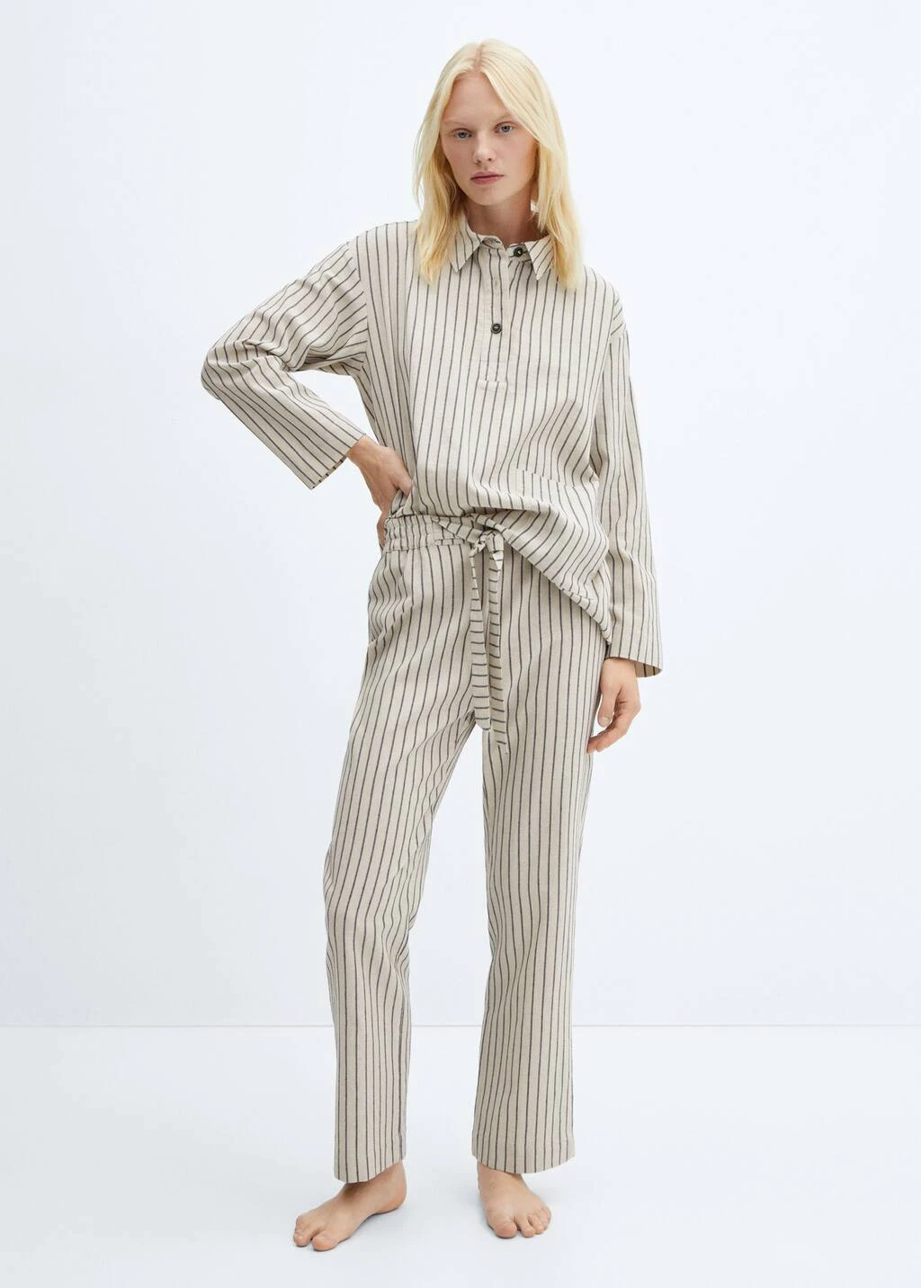 tissu de coton melange, coupe longue, droit, imprime rayures, taille elastique avec fermeture a nœud, total lookComposition: 66% coton,27% polyester,4% viscose,3% autres fibres