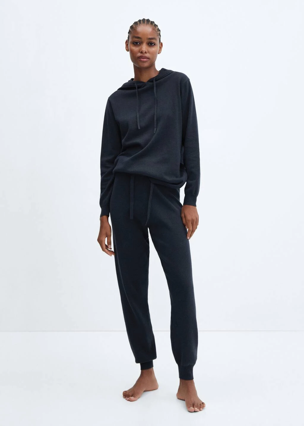 tissu de coton et lin melange, style jogger, coupe longue, taille haute, taille elastique avec fermeture a nĆud, bas elastique, total lookComposition: 70% coton,30% lin