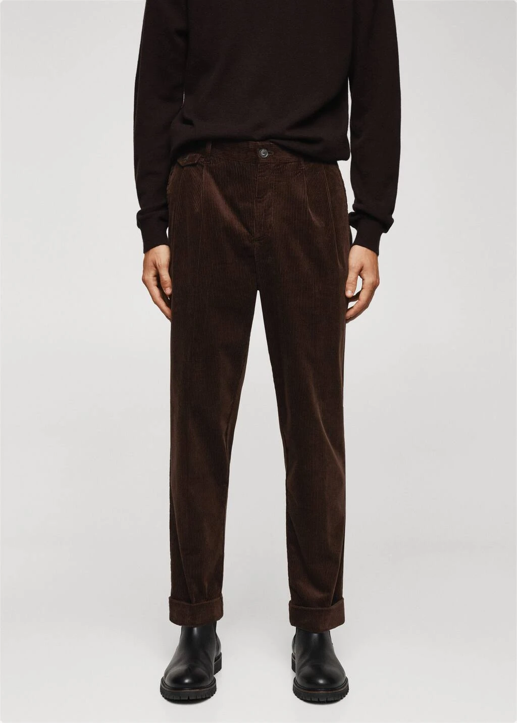ensemble disponible en total look, regular-fit, tissu en velours cotele, tissu en coton, pinces sur le devant, fermeture eclair avec bouton, passants de ceinture , poche gousset, deux poches avant, deux poches a rabat boutonnees a l’arriere, le mannequin mesure 190 cm et porte une taille 42Composition: 98% coton,2% elasthanne. Doublure poches: 65% polyester,35% coton
