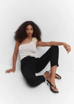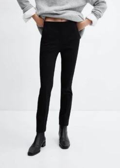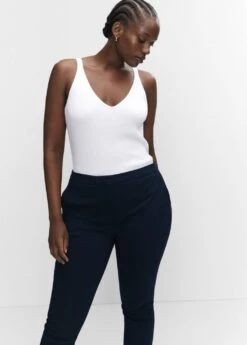 tissu fluide, coupe skinny, style crop, taille normale, style costume, deux poches laterales, deux poches passepoilees a l’arriere, passants pour la ceinture, doublure, fermeture eclair avec bouton, disponible plusComposition: 76% viscose,21% polyamide,3% elasthanne. Doublure: 80% polyester,20% coton