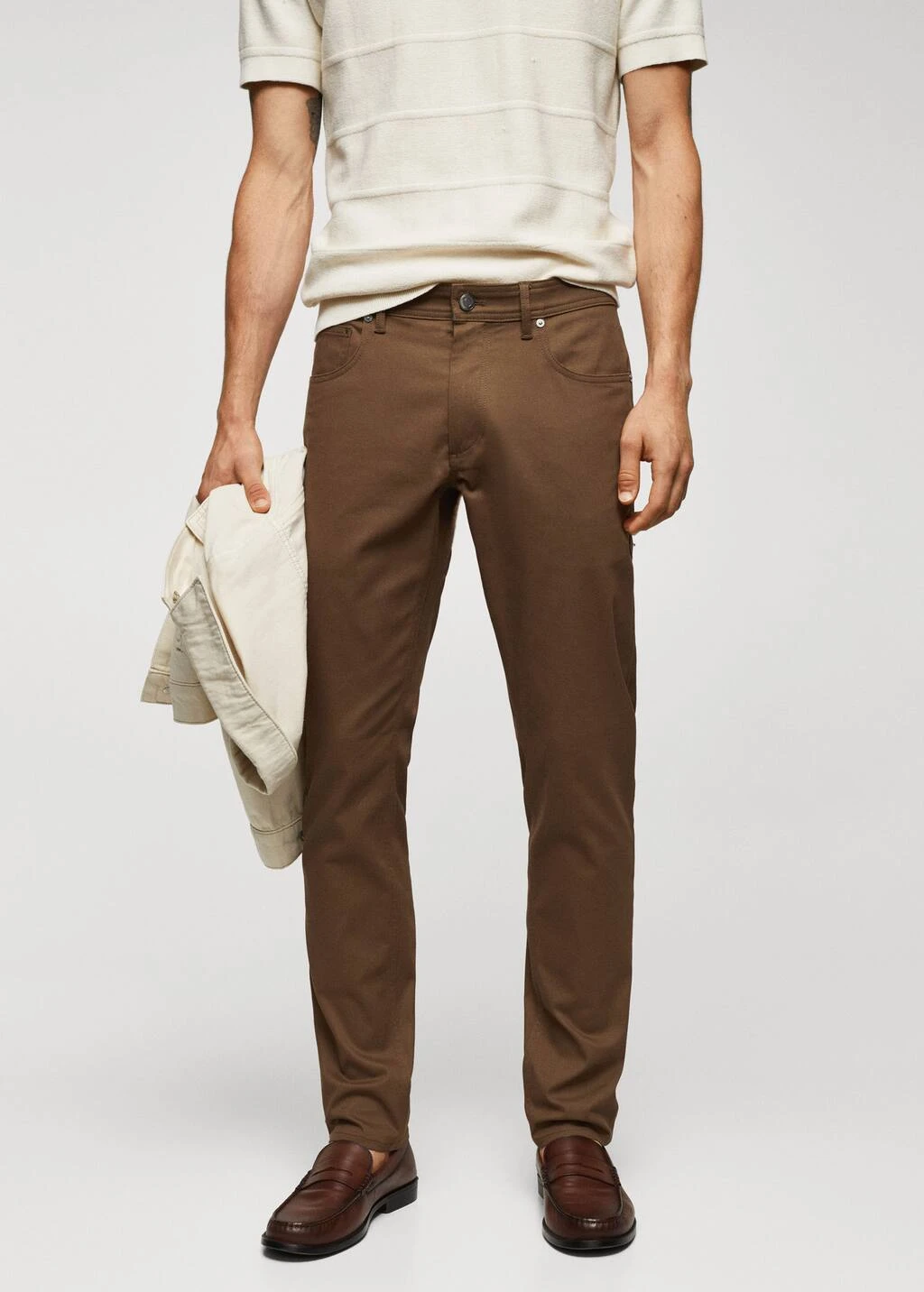 collection essentiels, slim-fit, tissu en coton stretch, tissu en serge, passants de ceinture , fermeture eclair avec bouton, cinq poches, deux poches laterales, poche gousset, deux poches plaquees a l’arriere, le mannequin mesure 187 cm et porte une taille 42, avec ce vetement en coton, vous soutenez notre investissement dans la mission de better cotton. ce tissu est un equilibre de masse qui remplace ou melange du coton better cotton avec du coton conventionnel, aussi il est possible qu’il ne contienne pas de better cotton. les agriculteurs partenaires beneficient d’un soutien et d’une formation continus.Composition: 98% coton,2% elasthanne. Doublure poches: 65% polyester,35% coton