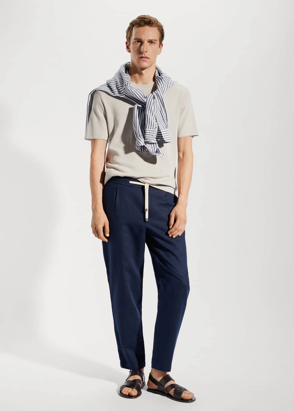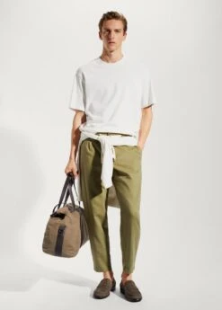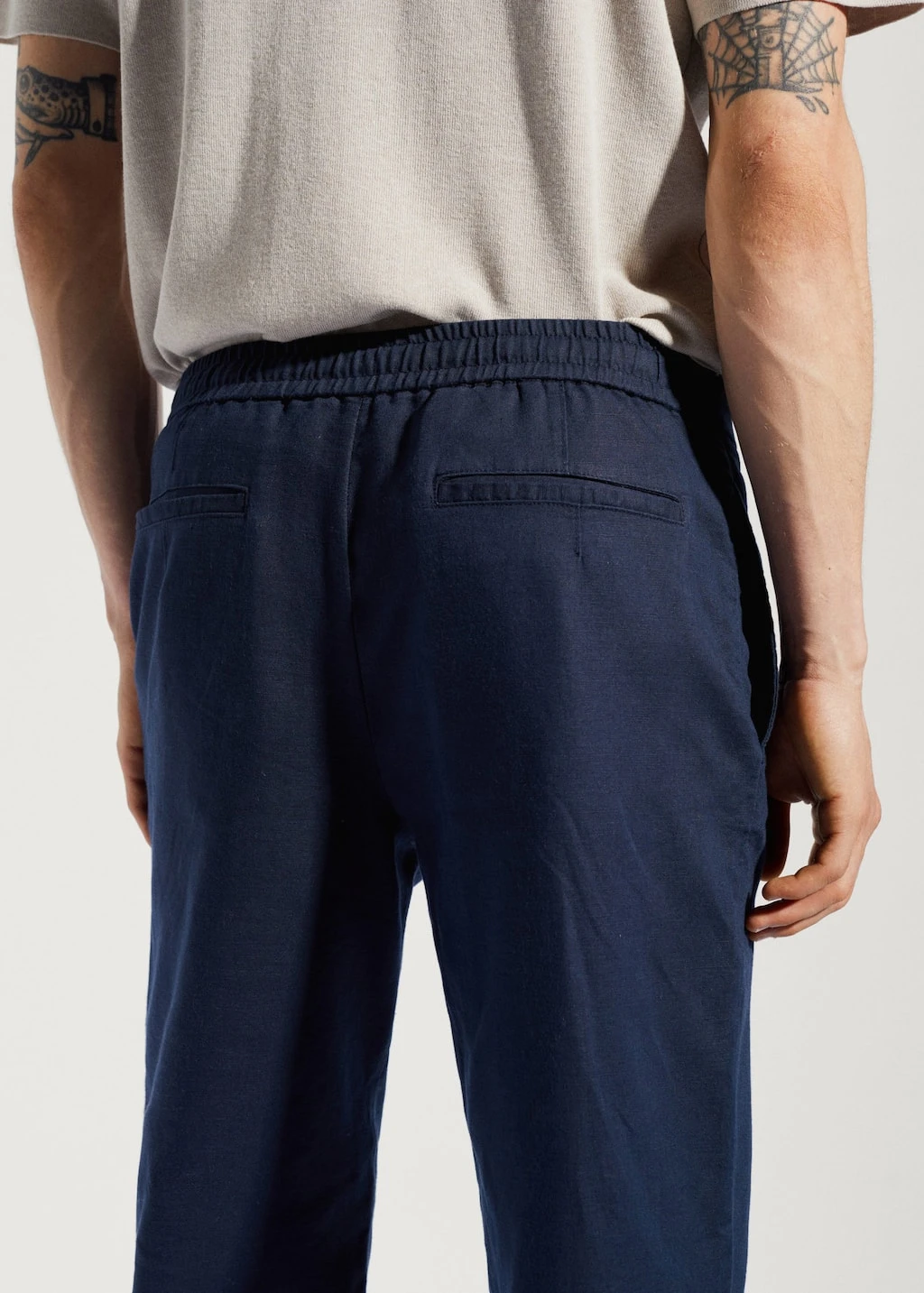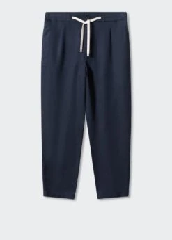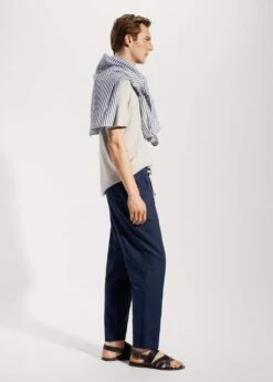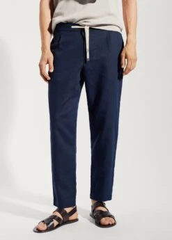 slim-fit, tissu en coton et lin melanges, double bouton et fermeture eclair, cordon de serrage a la taille, taille elastique avec cordon de serrage, pinces sur le devant, taille elastiquee, deux poches avant, deux poches passepoilees a l’arriere, bas droit, collection essentiels, le mannequin mesure 190 cm et porte une taille 42Composition: 53% lin,47% coton. Doublure poches: 100% coton