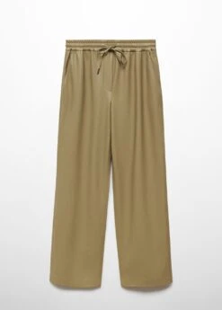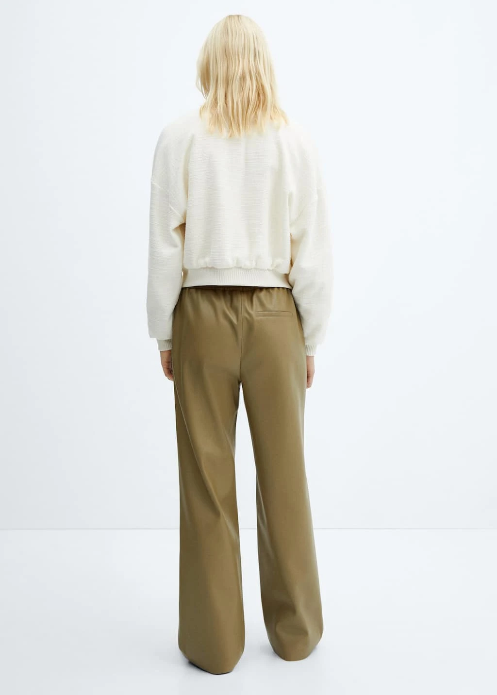 tissu fluide, similicuir, droit, deux poches laterales, taille elastique avec fermeture a nœudComposition: 100% polyester. Revêtement: 100% polyurethane. Doublure poches: 100% polyester