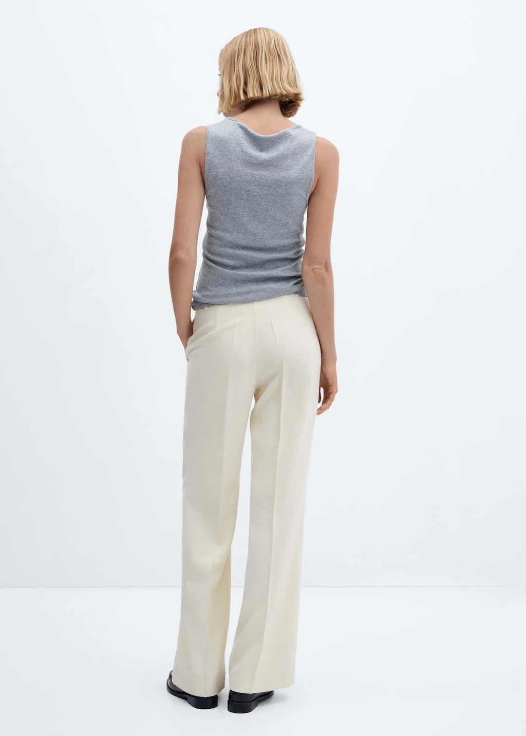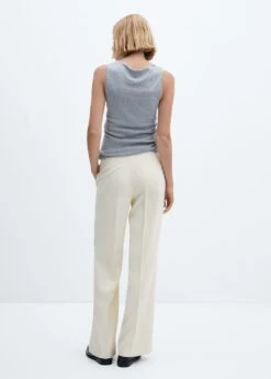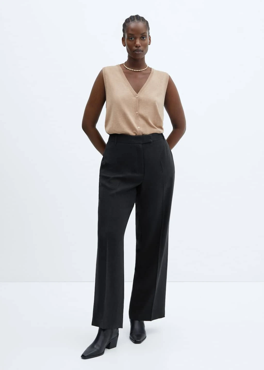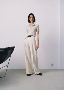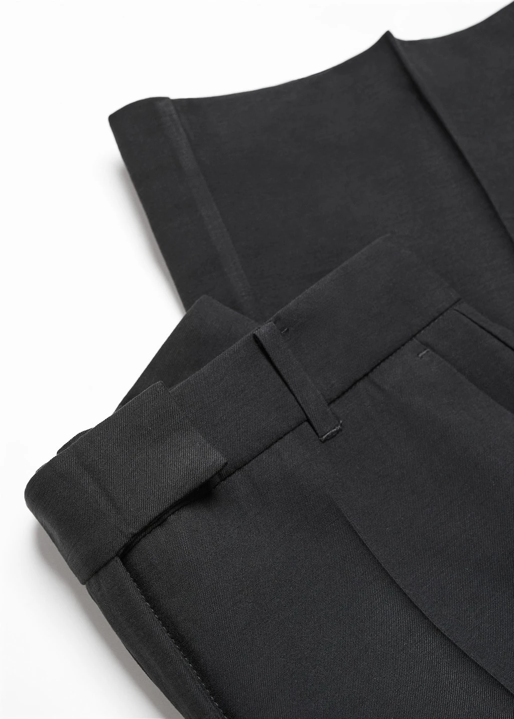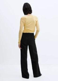 tissu fluide, tissu de coton melange, style costume, coupe longue, coupe wideleg, taille basse, passants pour la ceinture, fermeture eclair avec crochet et bouton dissimules, deux poches laterales, deux poches a rabat a l’arriere, detail plisse, disponible plusComposition: 92% viscose,8% polyester. Doublure poches: 80% polyester,20% coton