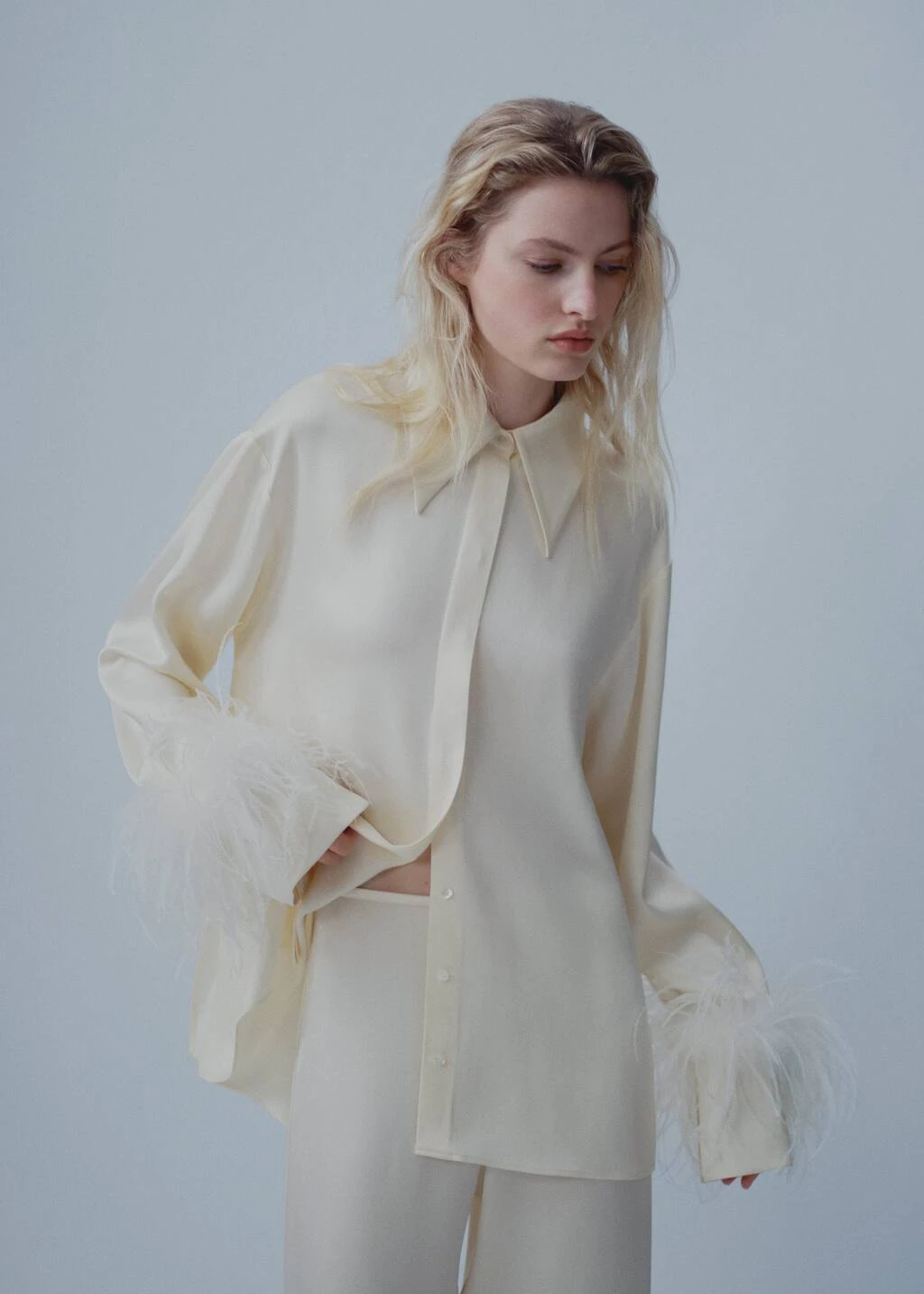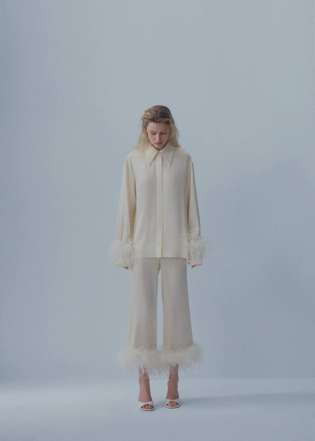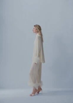 nous reinventons un classique en incorporant un detail de plumes qui apporte de la sophistication, mais egalement une touche amusante, jeune et originale. ce vetement a ete fabrique au maroc avec des tissus italiens qui lui conferent une qualite superieure., tissu fluide avec finition satinee, motif palazzo, style crop, taille haute, detail de plumes, fermeture eclair a l’arriere, tissus fabriques en italie, fabrique au maroc, short denim fleurs, collection fetes et ceremonies, capsule : une collection de vetements en edition limitee, fabriques avec les meilleurs tissus et le plus grand soin en matiere de patrons, afin d’obtenir les meilleures finitions. cette collection exclusive est concue pour les evenements et les occasions les plus chics.Composition: 71% acetate,29% viscose