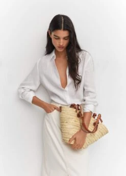 petite taille, tissu en raphia, details en cuir, deux anses courtes, deux anses longues, sac interieur, fermeture eclair, boutons metalliquesComposition: 85% rafia,15% cuir bovin. Doublure: 100% coton. Ornement: 100% fer