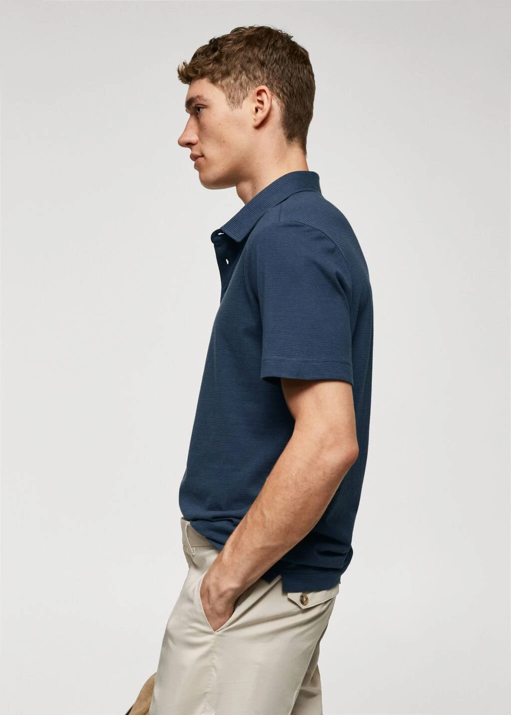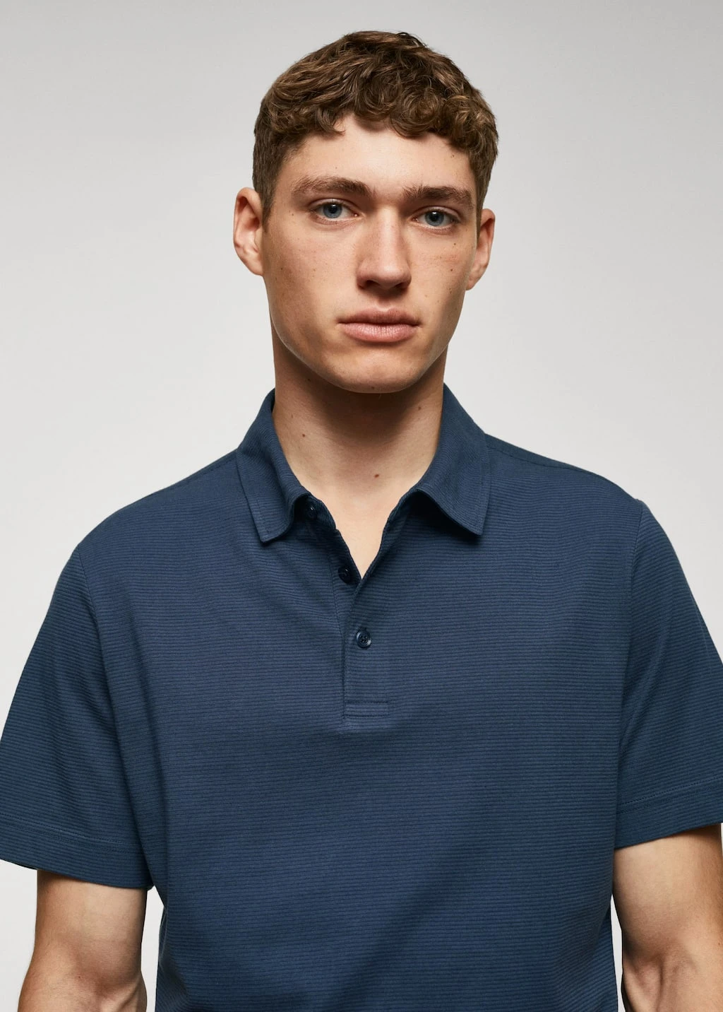tissu 100 % coton, regular-fit, finition microstructuree a rayures horizontales, col polo, manches courtes, bas droit, le mannequin mesure 187 cm et porte une taille mComposition: 98% coton,2% polyester