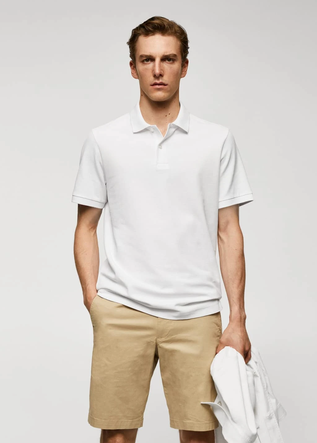 les essentiels : concus pour durer, tissu coton durable melange, col polo, manches courtes a poignets elastiques, fermeture boutonnee, le mannequin porte une taille m, campagne antoine griezmannComposition: 100% coton
