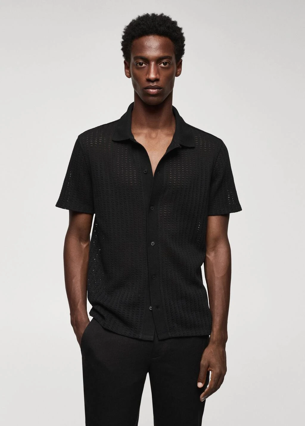 tissu de coton et polyester melanges, regular-fit, col classique, fermeture a boutons sur le devant, manches courtes, bas droit, le mannequin mesure 190 cm et porte une taille mComposition: 76% polyester,21% coton,3% viscose