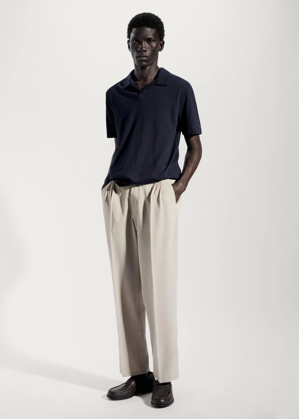 tissu en coton et lin melanges, tissu fin, slim-fit, col polo sans boutons, manches courtes, bas droit fendu sur les cotes., le mannequin mesure 190 cm et porte une taille m, exclusivite internetComposition: 53% lin,47% coton
