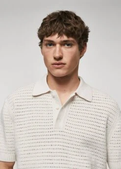 regular-fit, tissu en coton, tissu en grosse maille, col polo, manches courtes, col boutonne, bords coteles elastiquesComposition: 67% coton,33% polyester recyclé